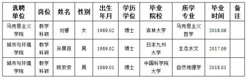 经用人单位推荐,人事处审查,学校教学督导及院系相关专家考核,我校拟确定下列人员来校工作。本着公平、公正、公开的原则,为保证我校选聘人员的质量,现将本次拟选聘人员基本情况公示如下: