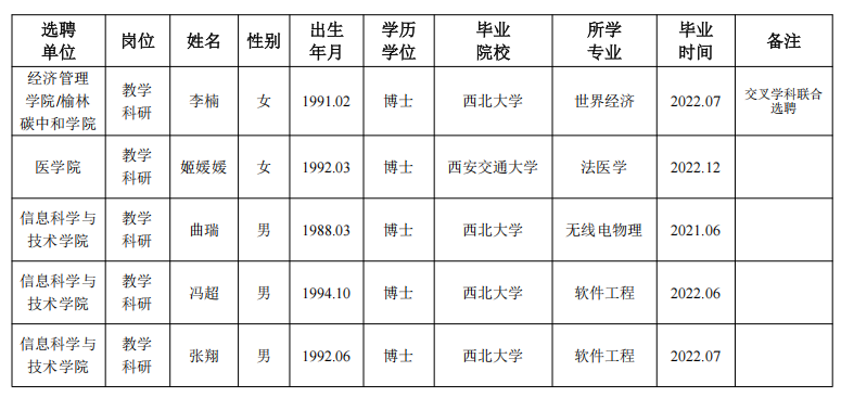 各单位或个人如对上述人选存有疑问,可在2022年7月12日前以书面形式向人力资源部反映。反映材料须实名提交,以便我部核实并反馈,我们将严格保密。(公示期结束后,如无异议,本人持三方协议、身份证、毕业生就业推荐表在岗位聘用办公室签订就业协议;或将上述材料邮寄至我部,邮寄地址:陕西省西安市长安区学府大街1号西北大学人力资源部。)